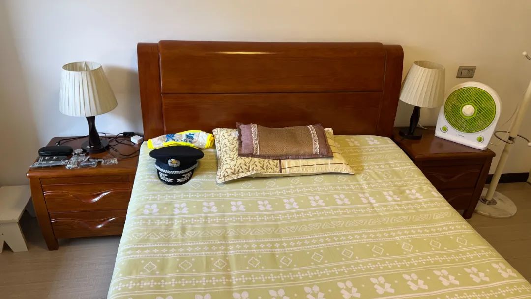 ▲吴建波床头整齐叠放反光背心和警帽